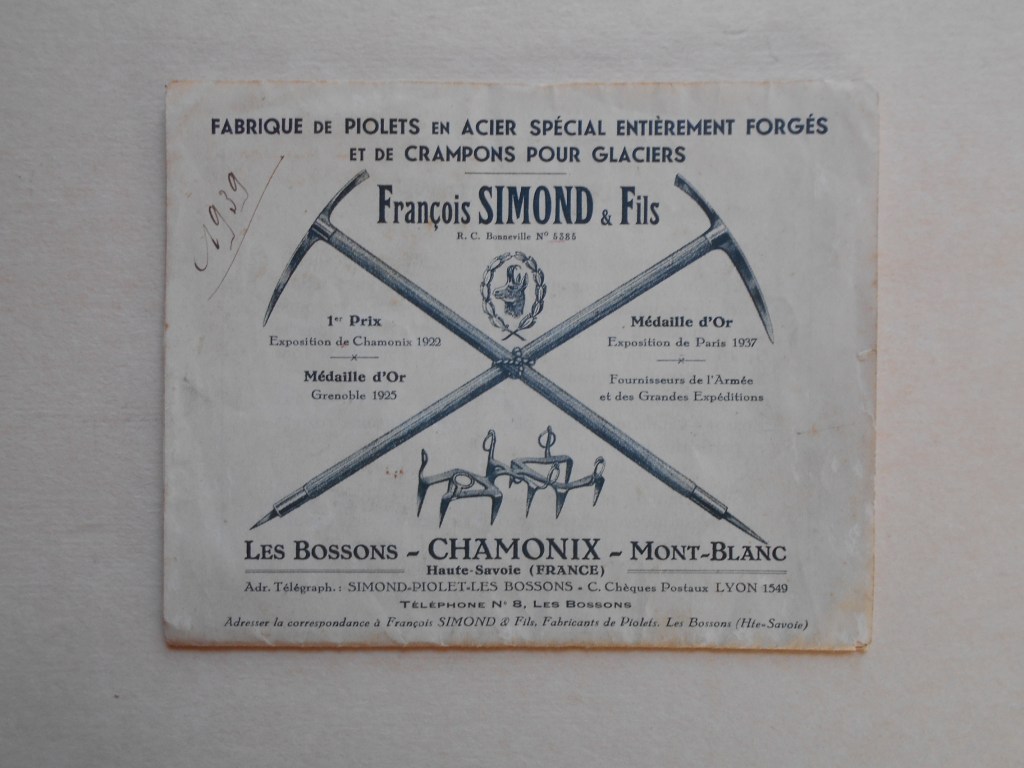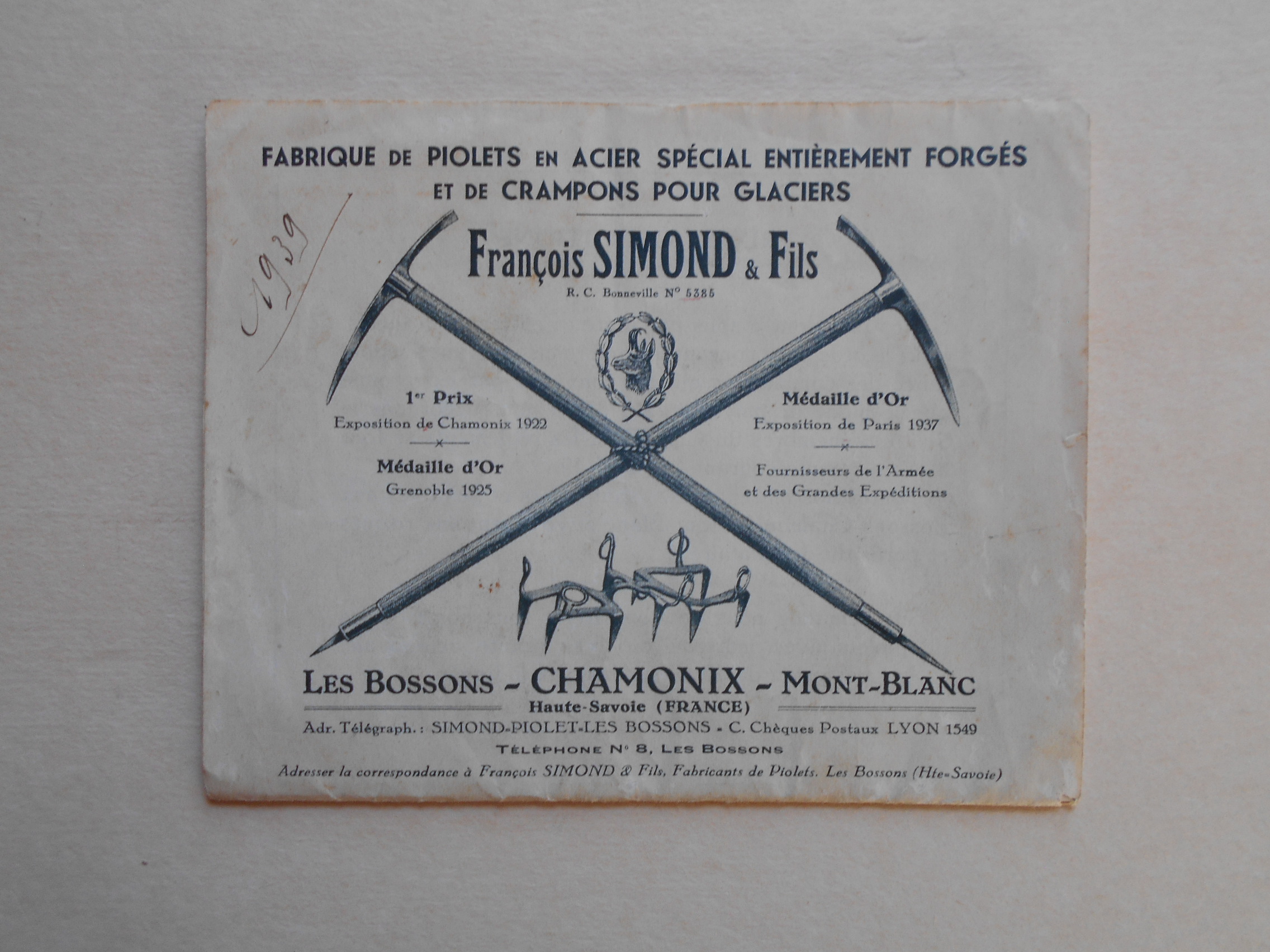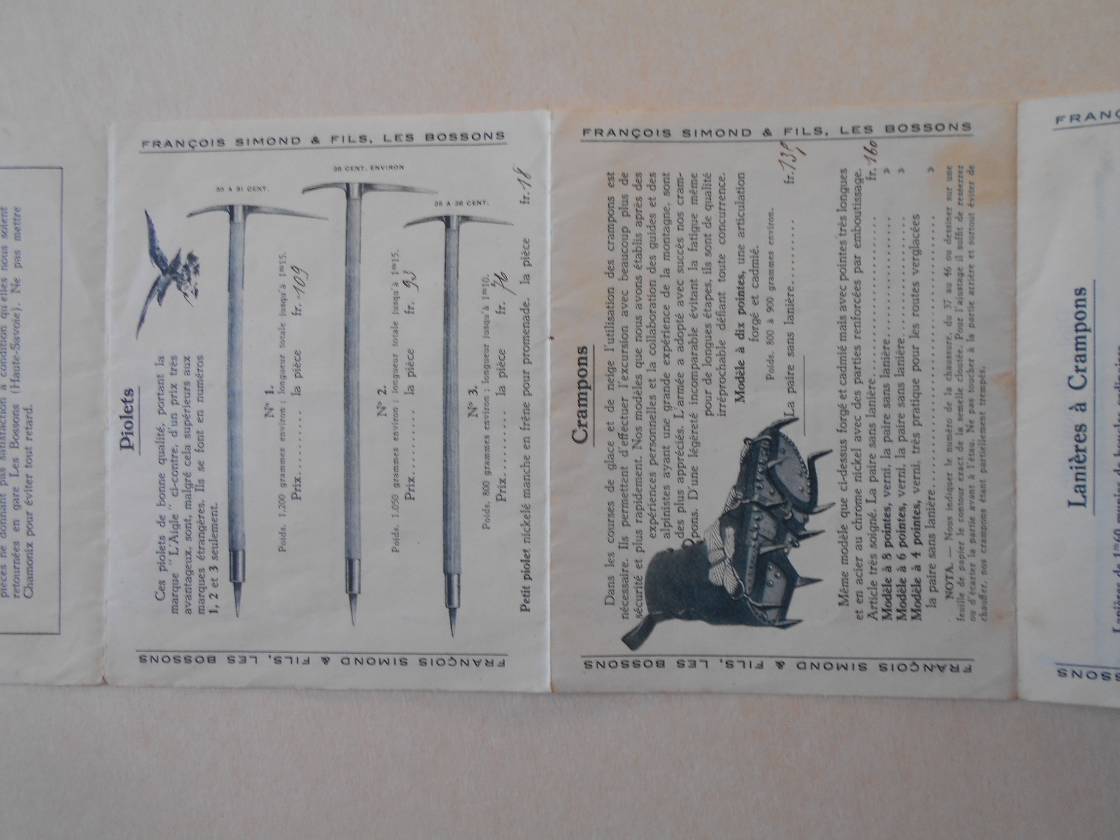 Piolets Simond, Catalogue 1939. 24 novembre 2021 ~ lesideesdesautres En montagne; il vaut mieux partir bien équipé. Catalogue des piolets Simond, Chamonix, 1939. La date et les prix sont notés à la plume. Catalogue des piolets Simond, Chamonix, 1939. Partager : Cliquer pour partager sur X(ouvre dans une nouvelle fenêtre) X Cliquez pour partager sur Facebook(ouvre dans une nouvelle fenêtre) Facebook J’aime chargement… Similaire