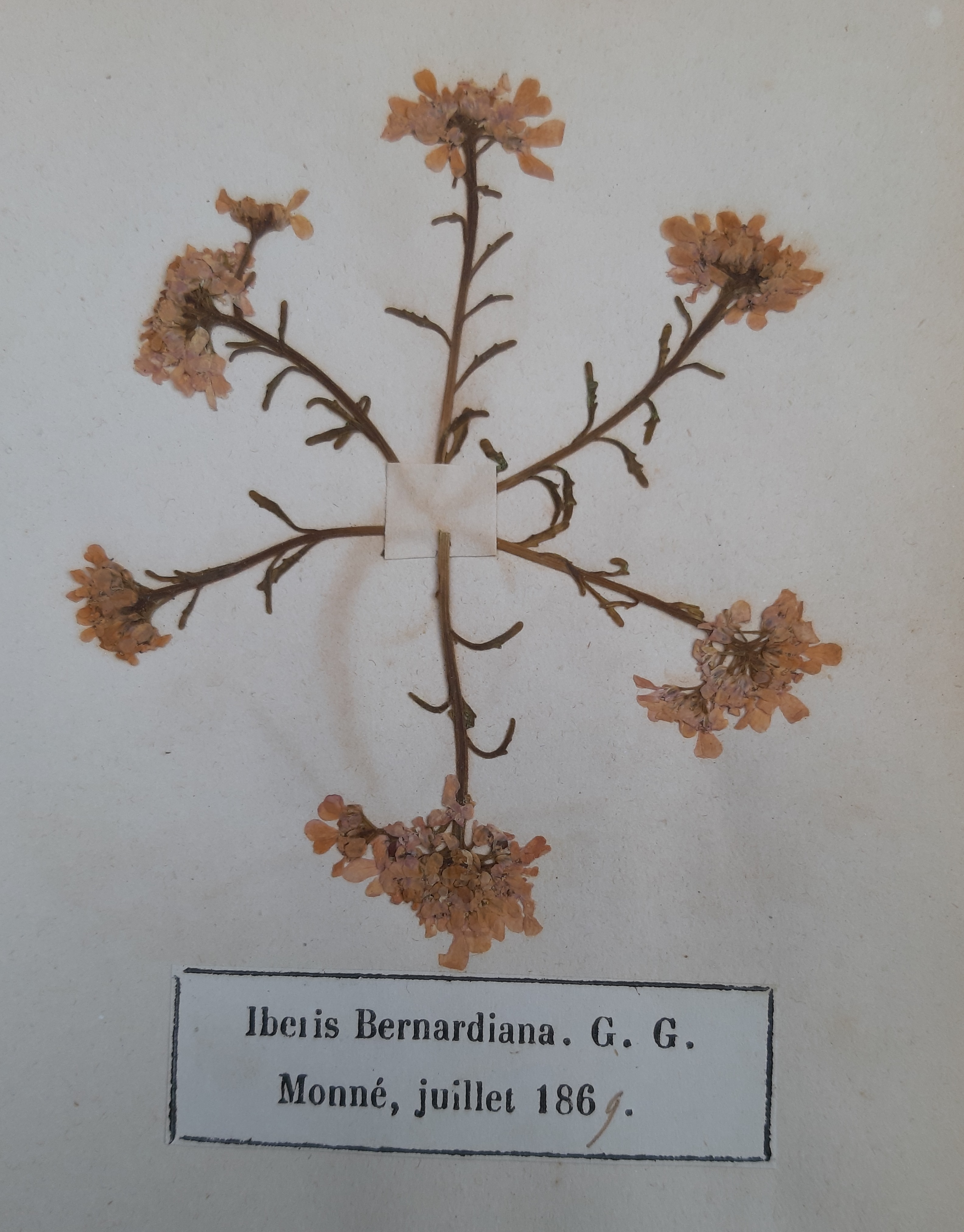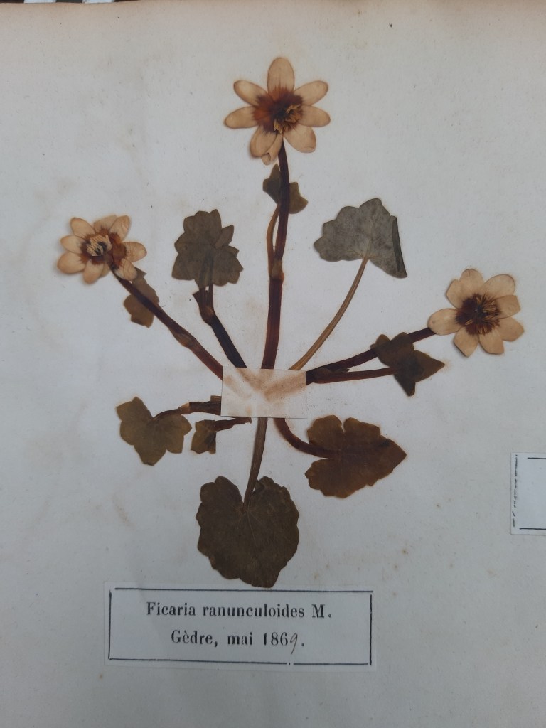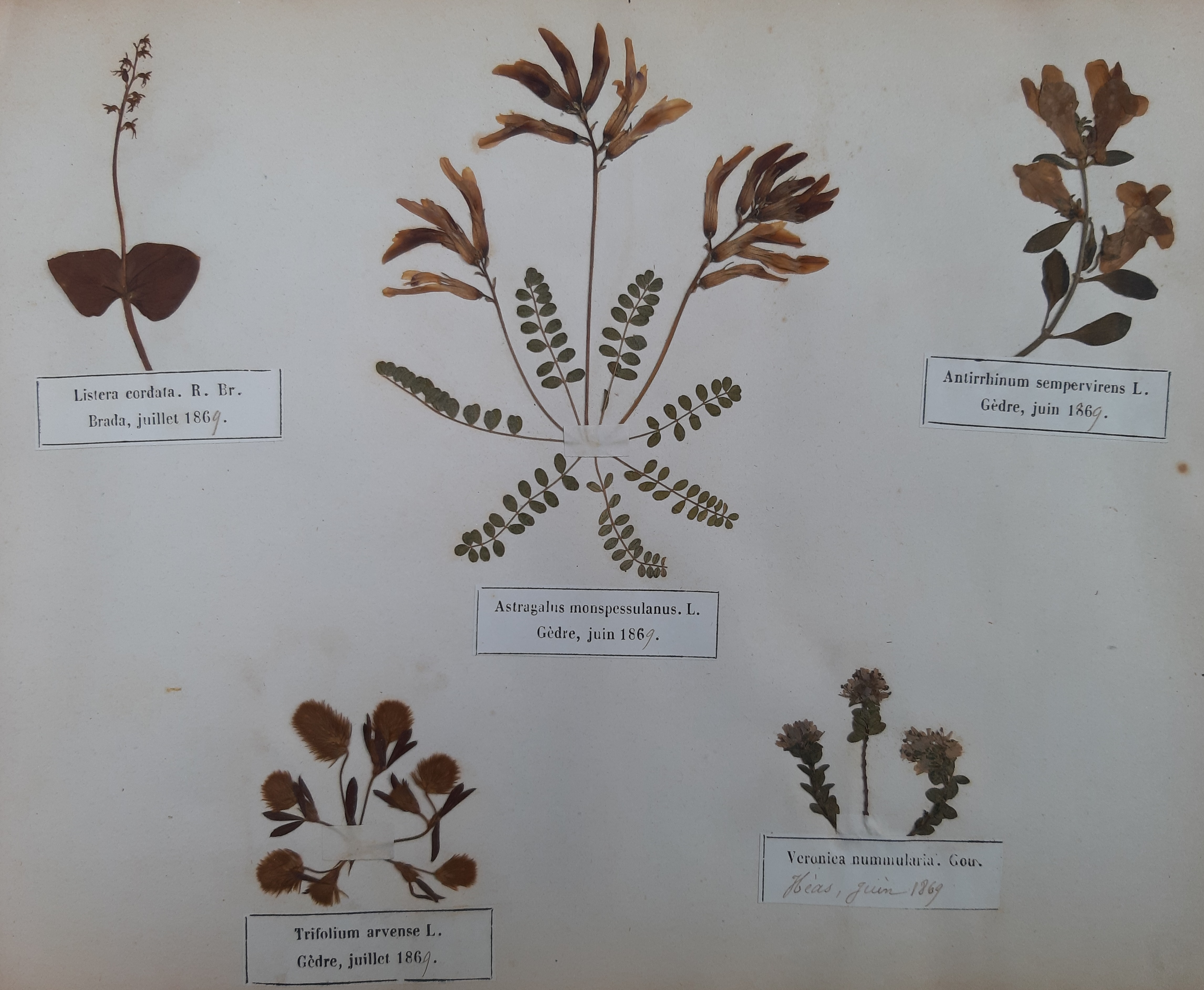 Quel plaisir que de faire l’acquisition d’un herbier de Henri Bordère, instituteur à Gerde (†1889) qui botanisait autour de Gavarnie et composait ces herbiers qu’il vendait aux touristes de passage dans sa commune. Les 97 spécimens sont datés de l’année 1869, ce qui place cet exemplaire dans la toute première génération de ces très beaux herbiers, composés avec beaucoup de soin et avec certains spécimens rares telle la Ramondia pyrenaica. Je vous laisse apprécier la beauté de l’objet.