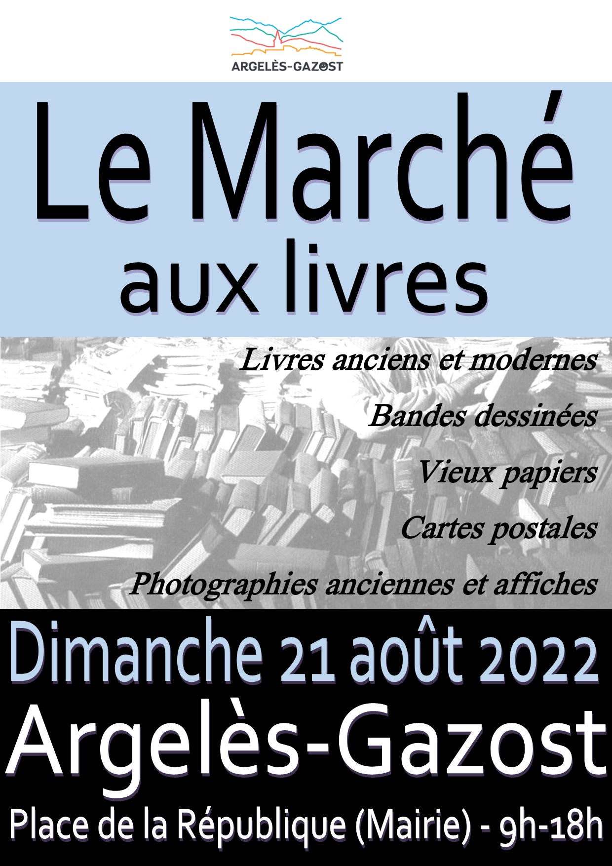 C’est avec beaucoup de plaisir que nous serons au premier Marché aux Livres qui aura lieu à Argelès-Gazost le dimanche 21 août 2022 sur la place de la République (Place de la Mairie), de 9h à 18h. Au programme, plusieurs bouquinistes présenteront un choix de livres anciens et modernes, de bandes dessinées, de vieux papiers, de photographies, d’affiches, de cartes postales, etc, etc!
